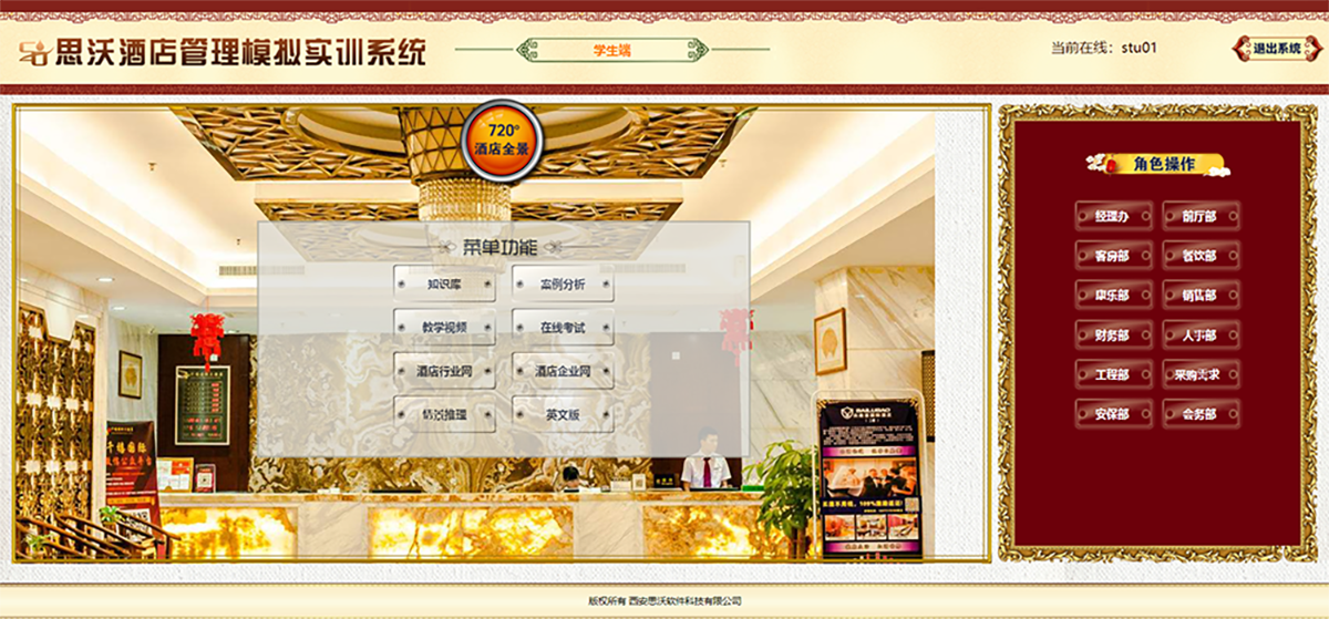 本公司的酒店管理实训系统是严格依照国家星级宾馆标准化业务程序流程进行精心打造,将酒店管理与教学深度融合。旨在为酒店管理专业的学生构建一个高度仿真的实践平台,让学生在研习理论知识的同时,通过酒店管理教学软件模拟操作,直观洞悉现代酒店管理的理念与思想。与此同时,借助软件开展教学,能够革新传统教学模式,减轻教师教学负担,让理论教学摆脱枯燥,显著提升教学质量。